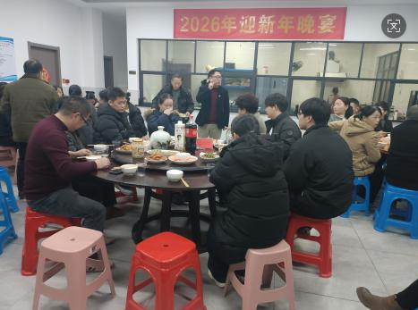 रात्रीच्या जेवणाचे ठिकाण उबदारपणाने भरलेले होते: गोल टेबल्स मनसोक्त पदार्थांनी भरलेले होते, सोडा आणि गरम पेयांनी एक आरामदायक, घरगुती वातावरण होते आणि कर्मचारी आरामशीर हसण्यासाठी कामाचा थकवा दूर करत गप्पा मारत बसले होते. कार्यक्रमादरम्यान, अनेक सहकाऱ्यांकडे लाल लिफाफे होते, परस्परसंवादी सत्रांमध्ये नवीन वर्षाच्या शुभेच्छा. स्थळ 时而 खेळकर हास्याने भरले होते, गमतीशीर भाषणांनी उडालेल्या जयजयकारांनी गुंजले होते. स्वयंपाकघरातील काचेच्या खिडकीच्या पलीकडे, जेवण तयार करण्यात व्यस्त असलेल्या कर्मचाऱ्यांच्या आकृत्यांची झलक दिसू शकते - या "कौटुंबिक मेजवानीला" अतिरिक्त उबदारपणा जोडणे.